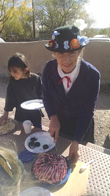 ...and then we dined outside. Here I am slicing into the horribly delicious Brain Cake.